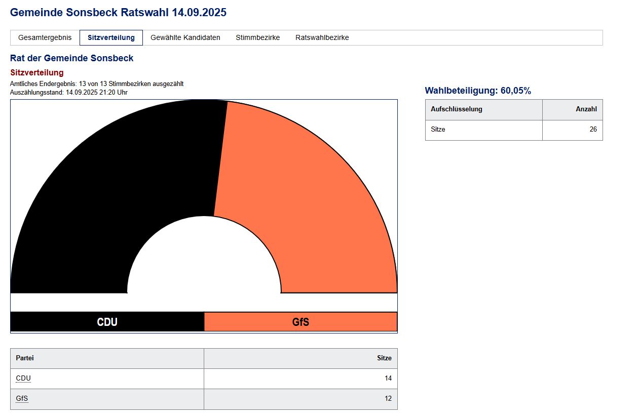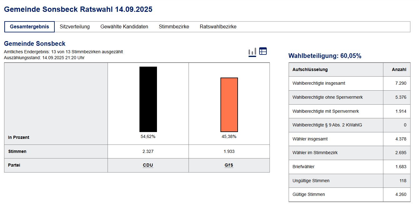 Kommunalwahl 2025 - CDU Sonsbeck gewinnt mit 54,62 % der Stimmen